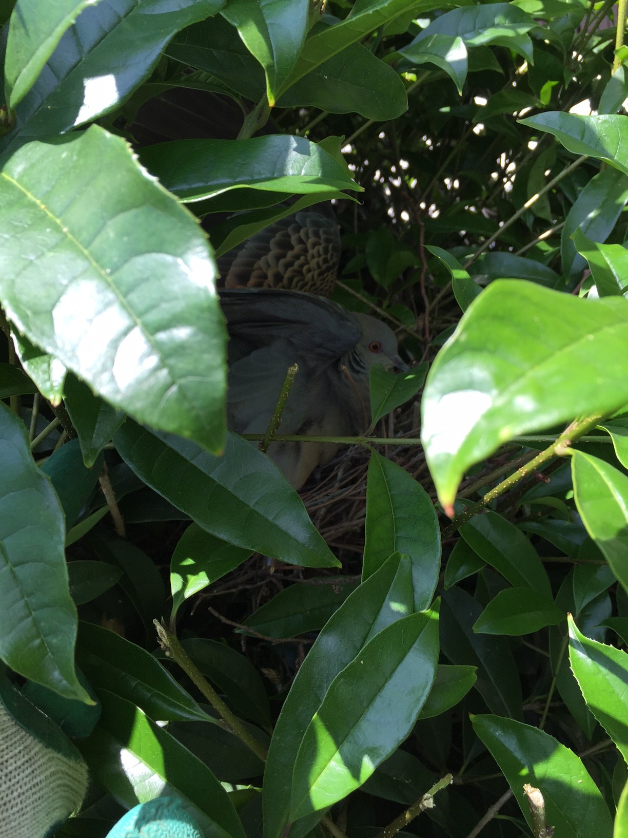キンモクセイを剪定していると、ハトの巣が・・・。