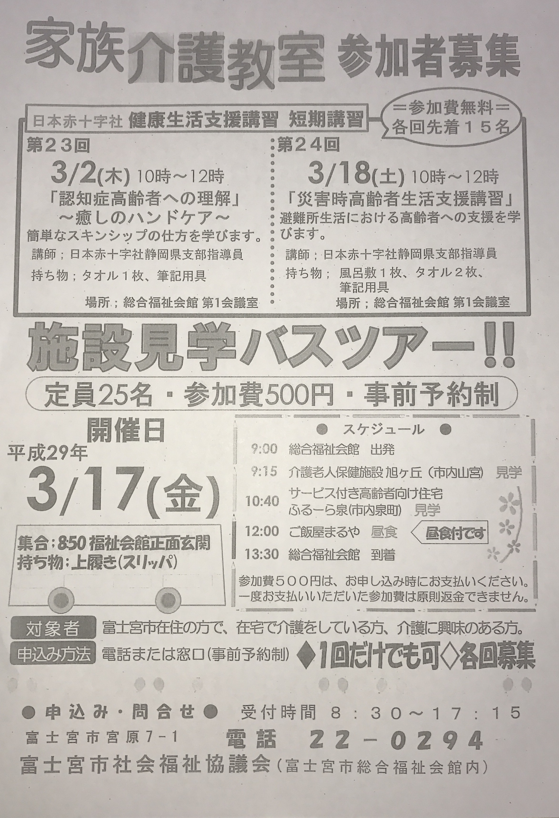 3月17日(金)に富士宮市社会福祉協議会による施設見学バスツアーが予定されています。